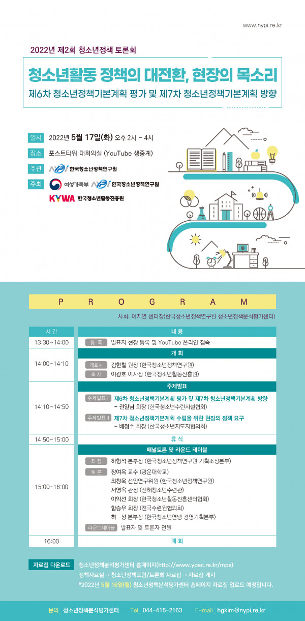 [한국청소년활동진흥원] 제2회 청소년 정책 토론회 개최 알림