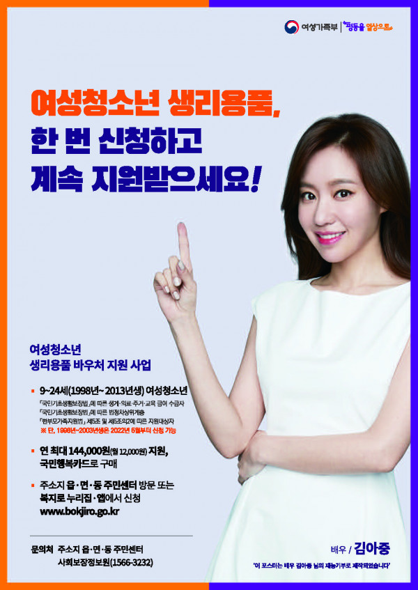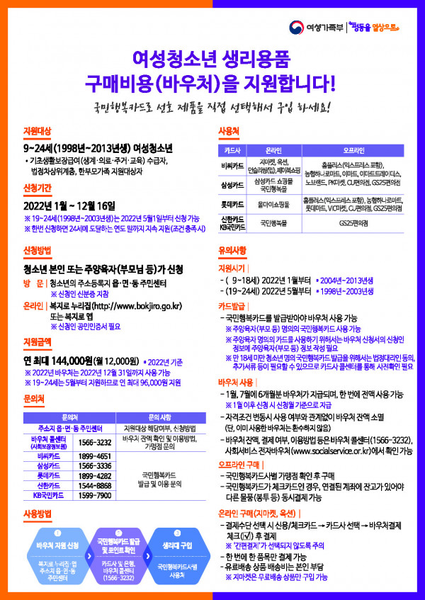 [여성가족부] 2022년 여성청소년 생리용품 지원 사업 안내