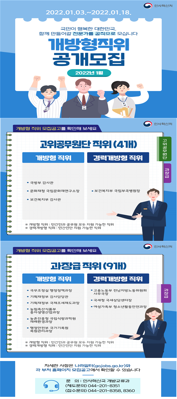 인사혁신처(중앙선발시험위원회)는 경력개방형 직위로 지정된 여성가족부 「청소년활동안전과장」을 다음과 같이 공개모집하오니