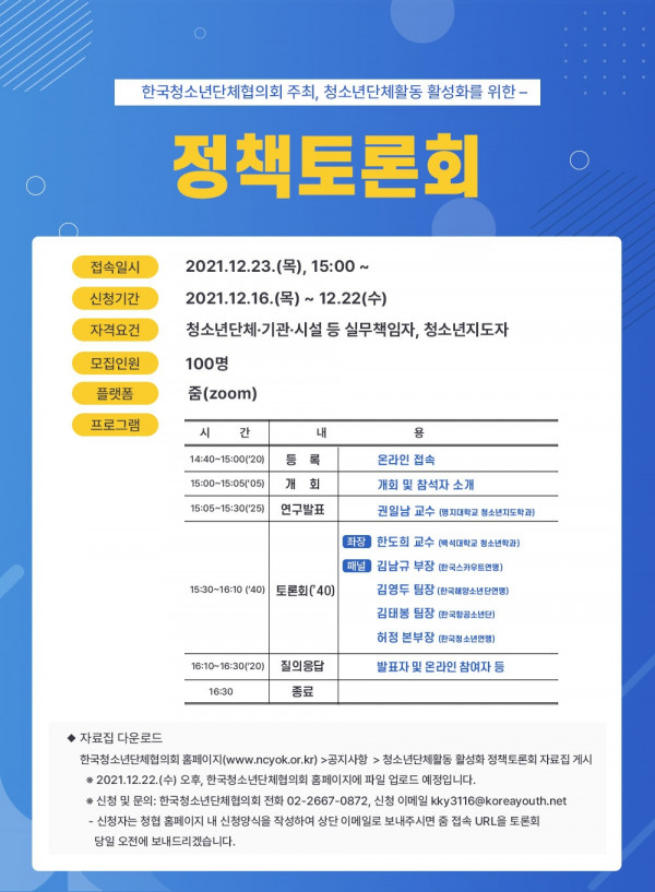 ♠ [한국청소년단체협의회] 청소년단체활동 활성화를 위한 "정책토론회" 개최(자료집 첨부) ♠