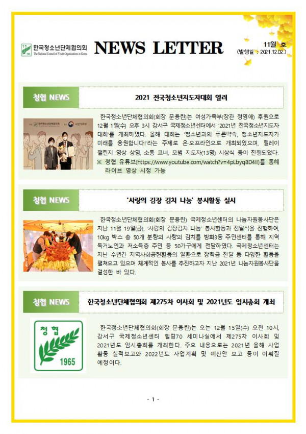 ♠ [청협소식] 11월호 뉴스레터 발간 ♠