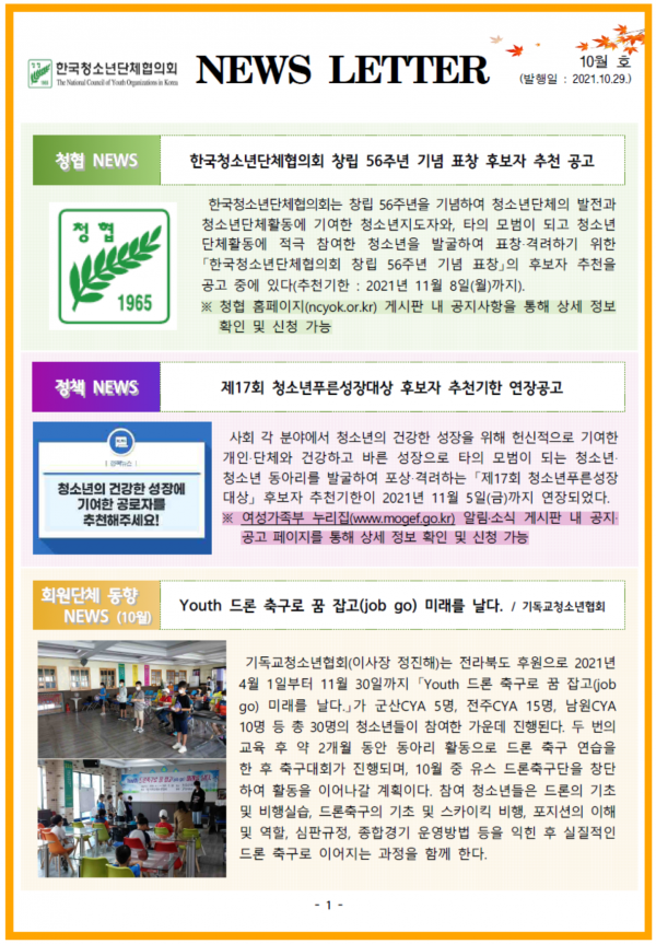 ♠ [청협소식] 10월호 뉴스레터 발간 ♠