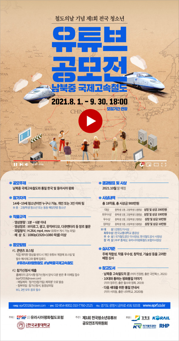 제1회 전국 청소년 유튜브 공모전 [남북중 국제고속철도] 」을 개최합니다.