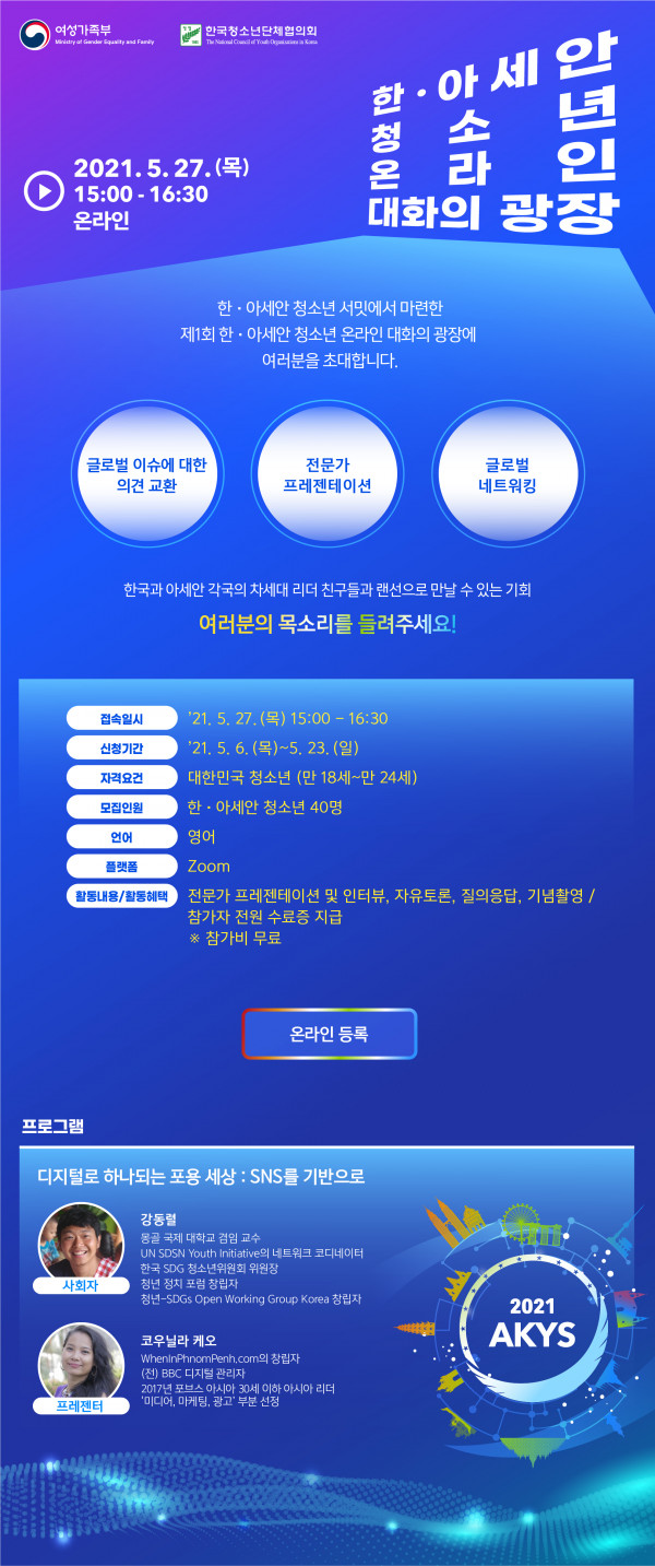 5월 27일에 열리는 제1회 한‧아세안 청소년 온라인 대화의 광장은