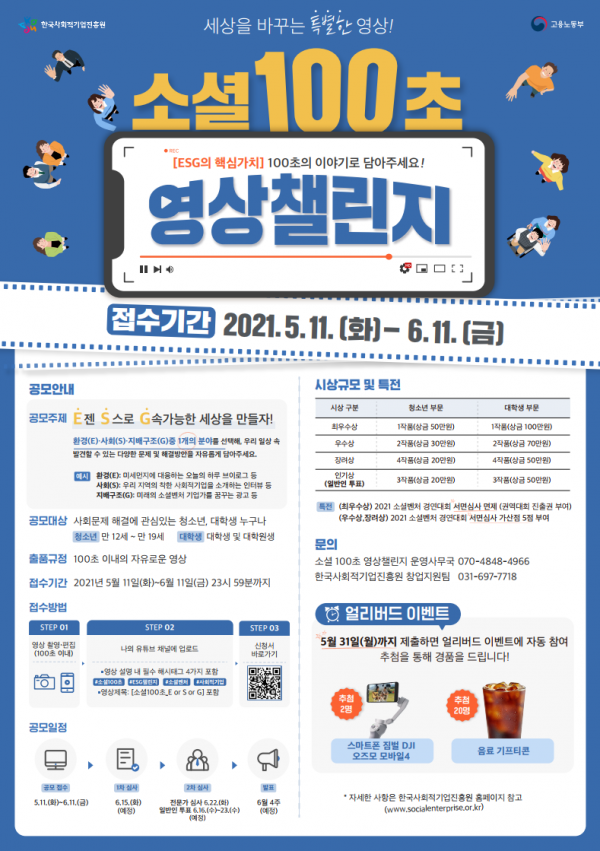 2021년 "소셜100초 영상챌린지" 참가자 모집 안내