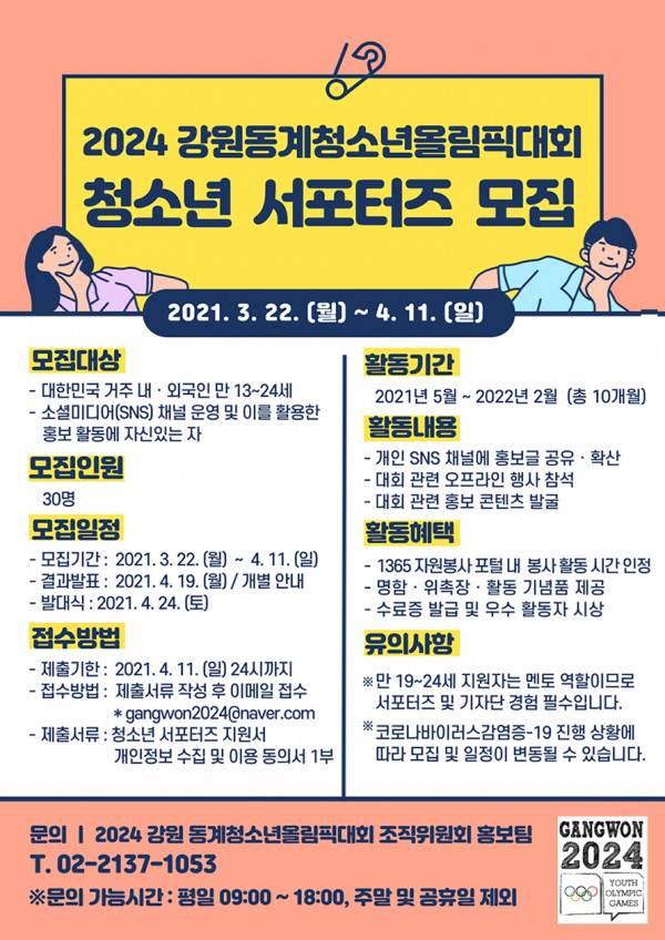 2024 강원 동계청소년올림픽대회 (가칭) 청소년 서포터즈 모집 공고 안내