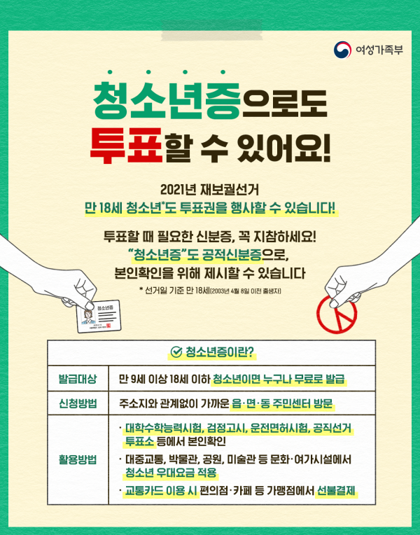 [여성가족부] 만 18세 청소년 유권자 투표 시 청소년증 활용 안내