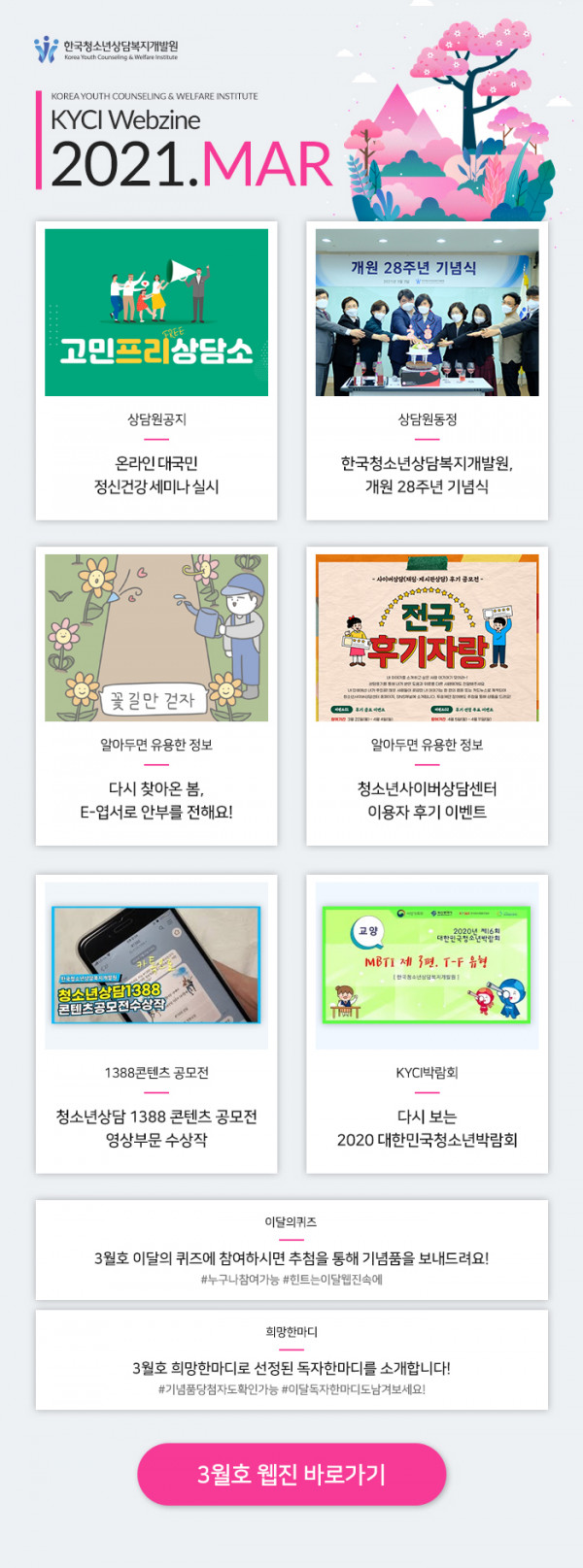 한국청소년상담복지개발원에서는 정기 웹진을 발행 중으로,