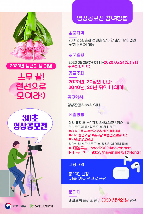 [연장] ★★★"스무 살, 랜선으로 모여라!" 30초 영상 공모전★★★