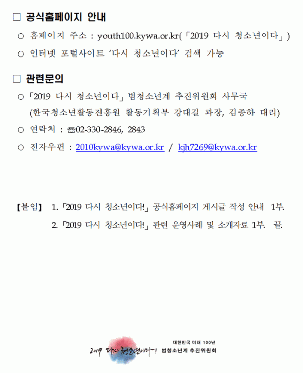 2019다시 청소년이다! 지역사회 사업참여 확대 및 활성화를 위한 홍보 안내