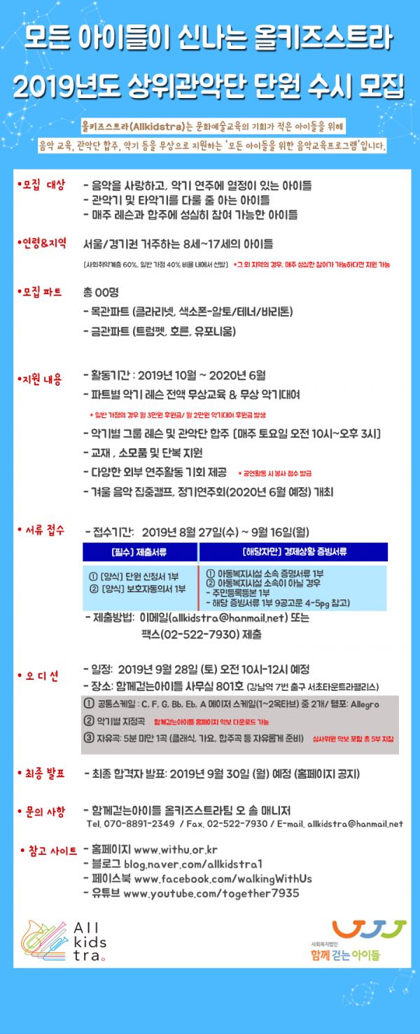 2019년 올키즈스트라 상위관악단 단원 수시 모집