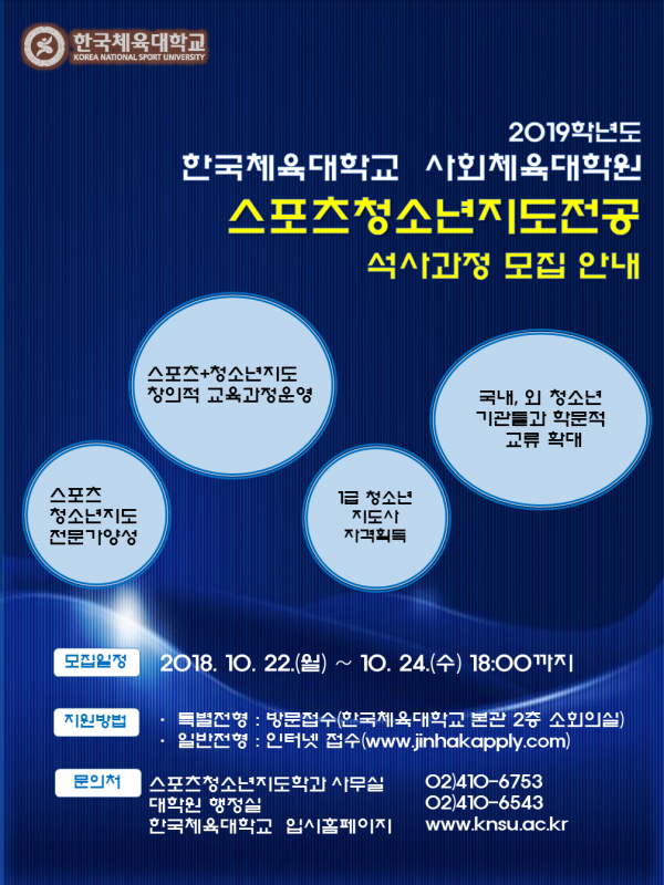 한국체육대학교 2019학년도 대학원신입생 모집요강