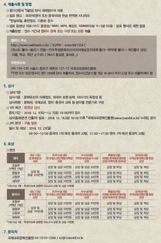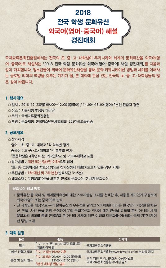 [국제교류문화진흥원] 2018 전국 학생 문화유산 외국어(영어․중국어) 해설 경진대회 안내