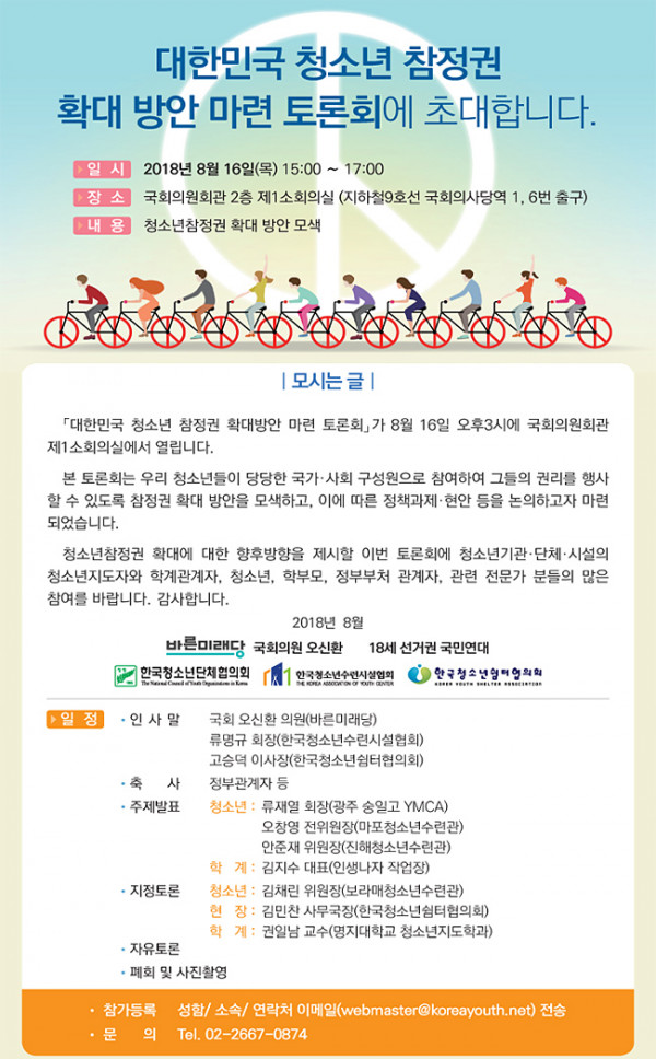 ‘대한민국 청소년 참정권 확대방안 마련 토론회’ 홍보 및 참석 요청