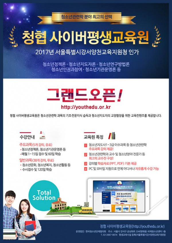 한국청소년단체협의회는 원격평생교육시설인 ‘청협 사이버평생교육원’을 2017년