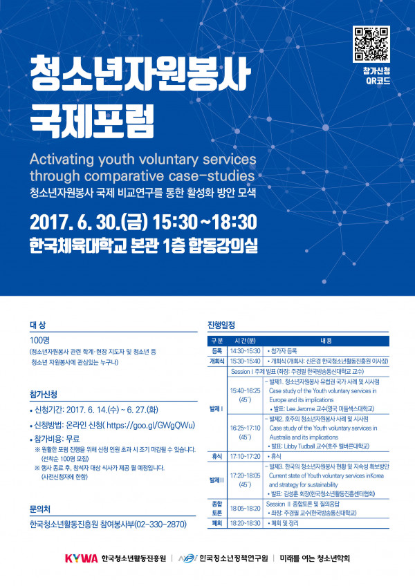 국내외 청소년자원봉사 전문가들이 참여하는 이번 포럼을 통해 , 청소년자원봉사