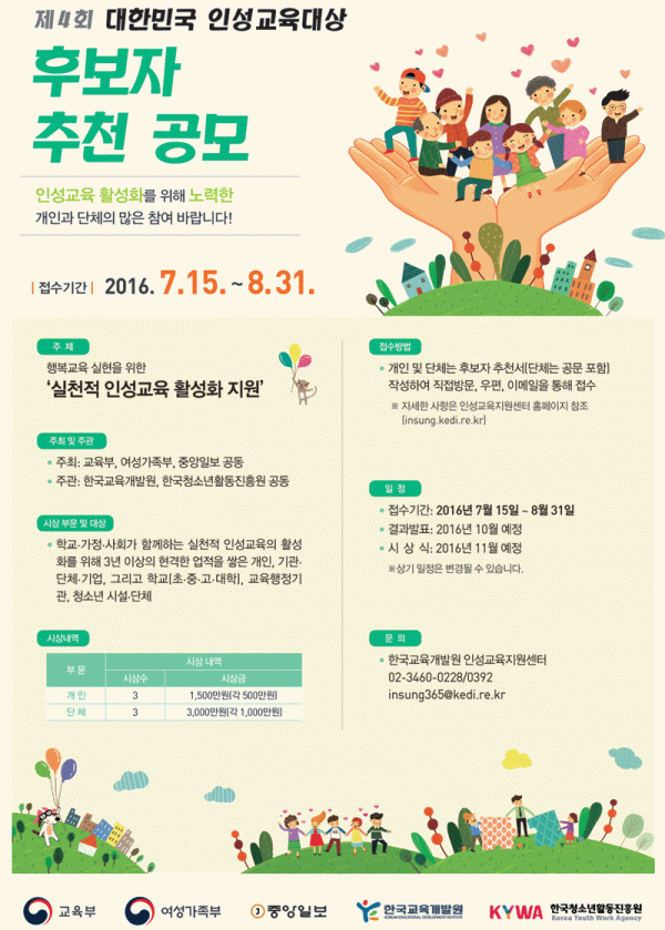 제4회 대한민국 인성교육대상 수상 후보자 추천 안내