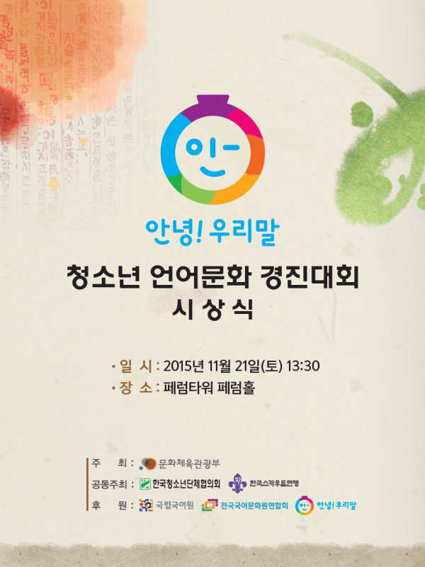2015 안녕! 우리말, “청소년 언어문화 경진대회” 시상식 안내