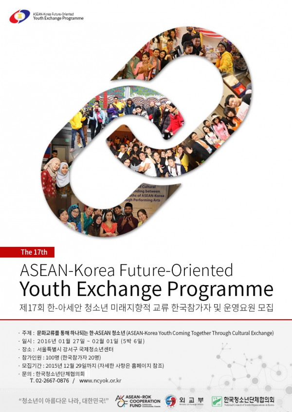 제17회 한-ASEAN 미래지향적 청소년교류 한국참가자/전문인턴/촬영요원/운영요원 모집 공고