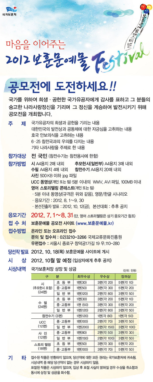 [공지] 2012년도 보훈문예물 페스티벌 공모전