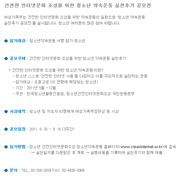 주관 : 청소년건전인터넷문화조성국민운동본부, 한국청소년활동진흥원