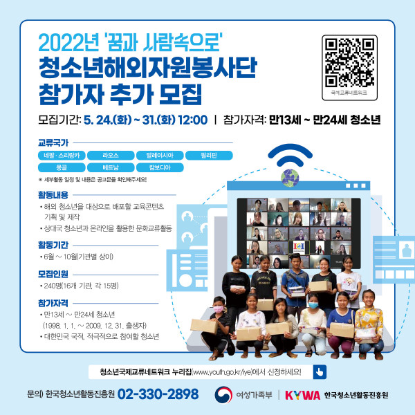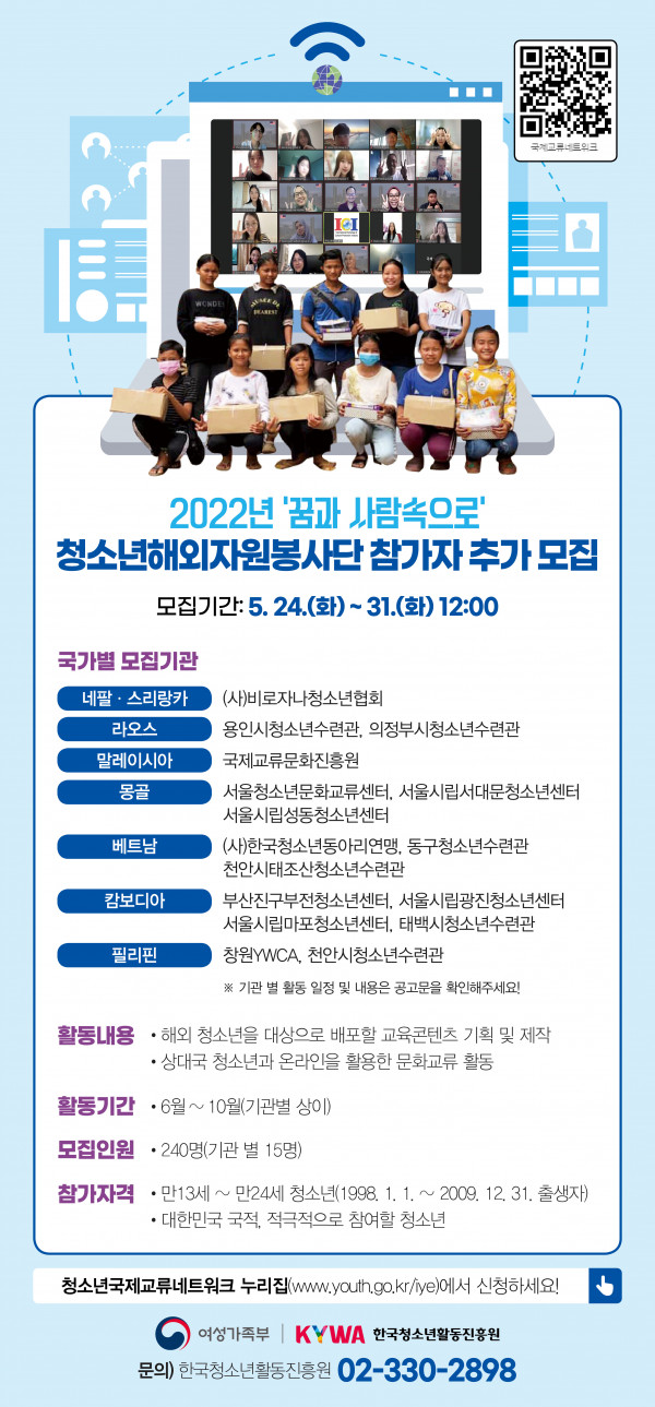 [한국청소년활동진흥원] 2022년 ‘꿈과 사람속으로’ 청소년해외자원봉사단 참가자 추가모집 공고