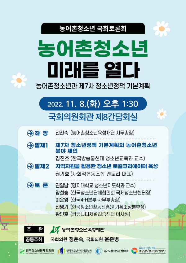 국회 정책토론회 ‘농어촌청소년 미래를 열다’ 개최 안내