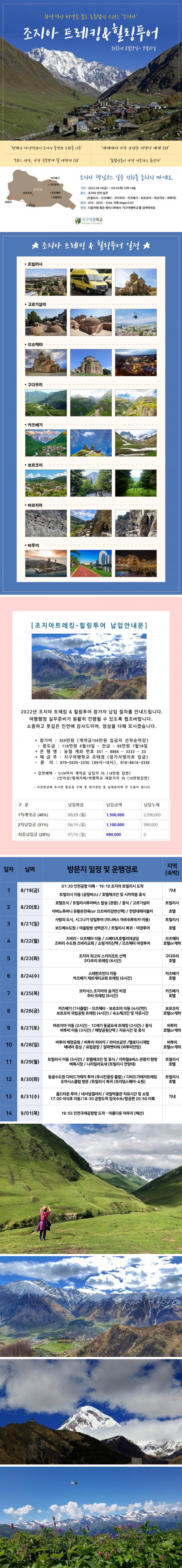 2022년 8월 조지아 트레킹 & 힐링투어가 진행됩니다.