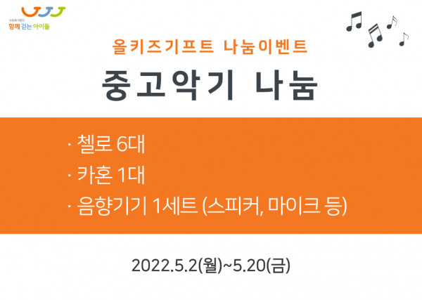 [사회복지법인 함께걷는아이들] 올키즈기프트 나눔 이벤트 '중고 악기 나눔' 안내