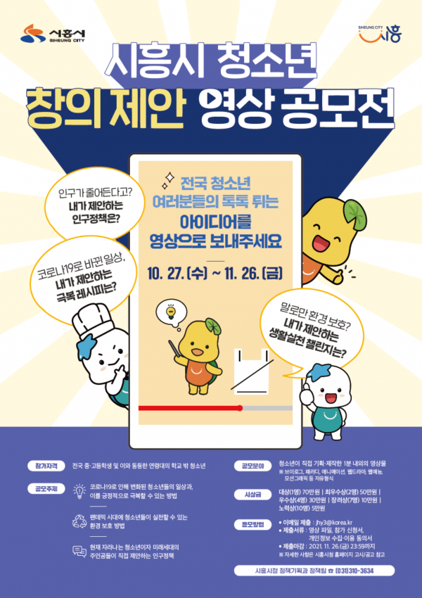 시흥시는 미래를 이끌어갈 청소년 여러분의 창의적인 아이디어를 공모하오니 많은 관심과 참여 바랍니다.