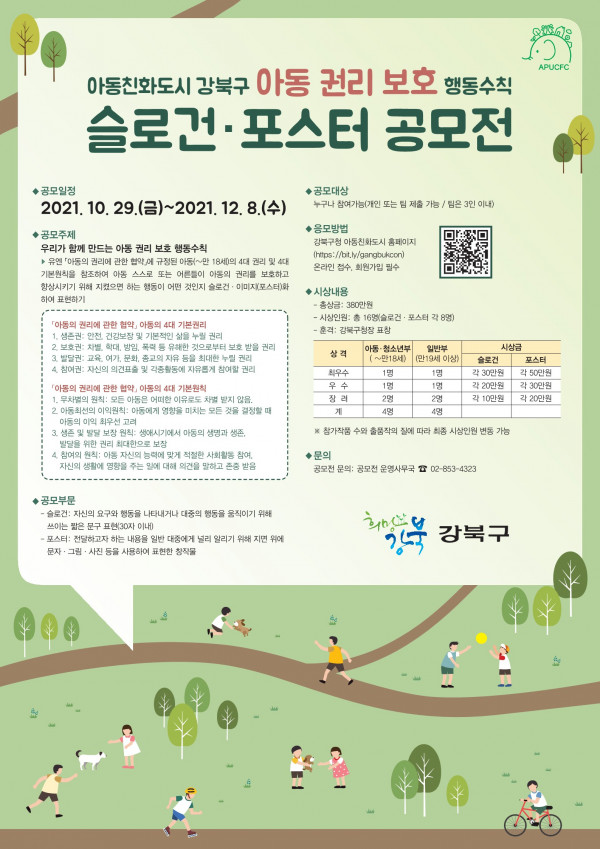 1. 공모 명칭: 아동친화도시 강북구 「아동 권리 보호 행동수칙」 슬로건·포스터 공모