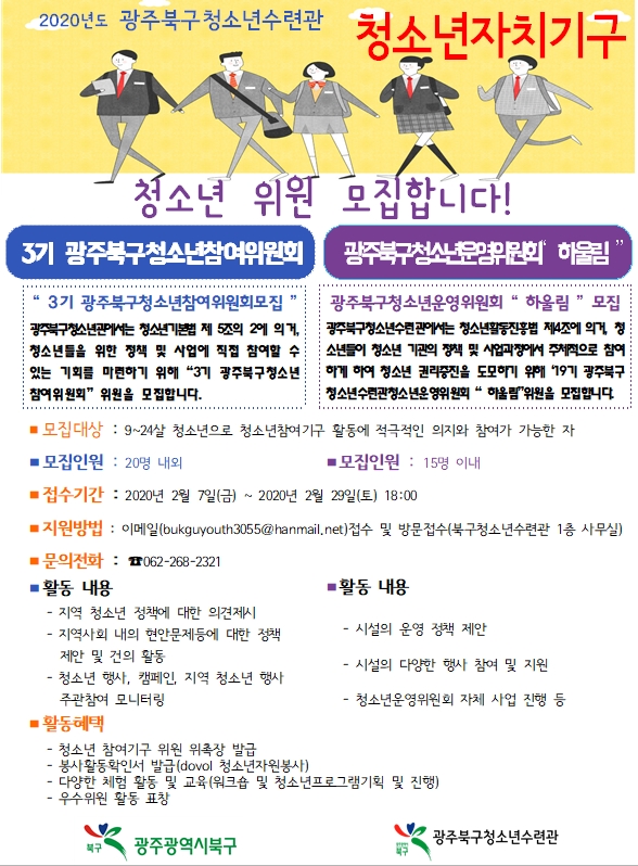 [모집] 광주광역시 북구청소년수련관 청소년참여기구 위원모집!!