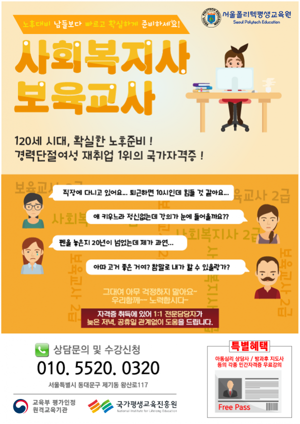 [공고] 사회복지사/보육교사 국가고시!! 취득과정 어려워지기전 마지막 개강반!!