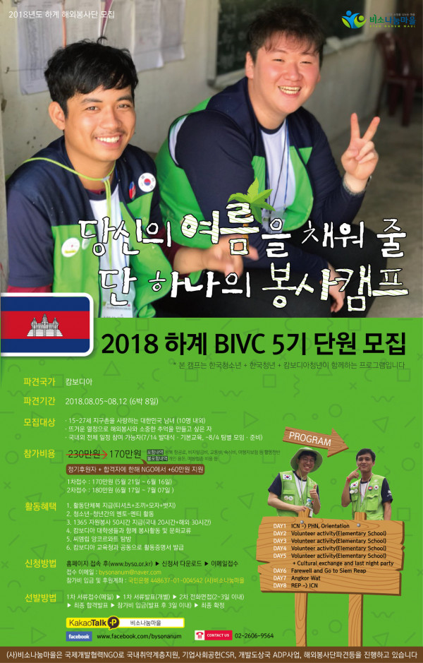 2018년도 비소나눔마을 국제봉사캠프 하계 모집을 시작합니다!