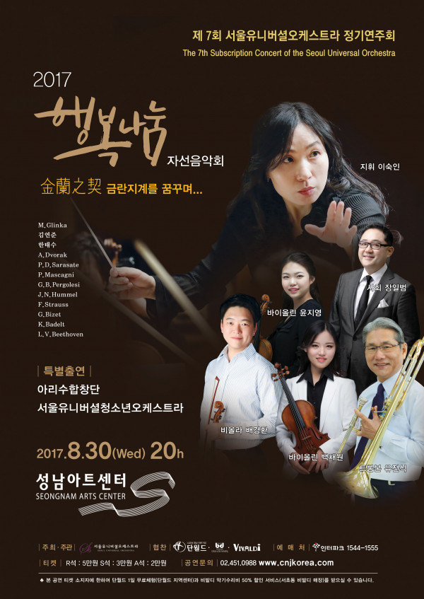 [8월30일] 서울유니버셜청소년오케스트라 특별출연 - 제 7회 서울유니버셜오케스트라 정기연주회 페이지 정보 작성자 이숙인 작성일2017.08.22 조회9,925회 댓글0건 본문 댓글목록 등록된 댓글이 없습니다. 이전글 다음글 목록