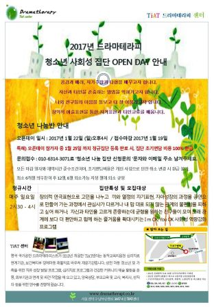TIAT 청소년 사회성 집단 2017.1.22. 오픈데이 신청 안내