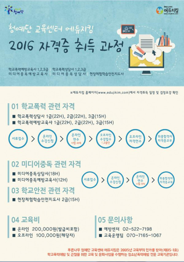 [푸른나무청예단-에듀지킴] 학교폭력관련 자격증은 전문기관에서 취득하세요!