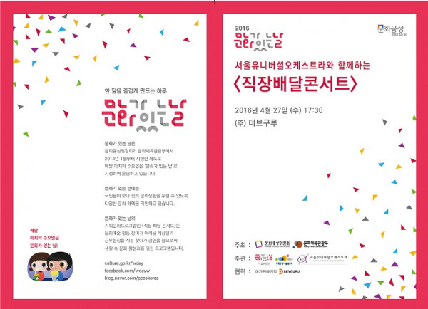 본 프로그램은 2016년 문화가 있는 날 <직장배달콘서트>의 일환으로