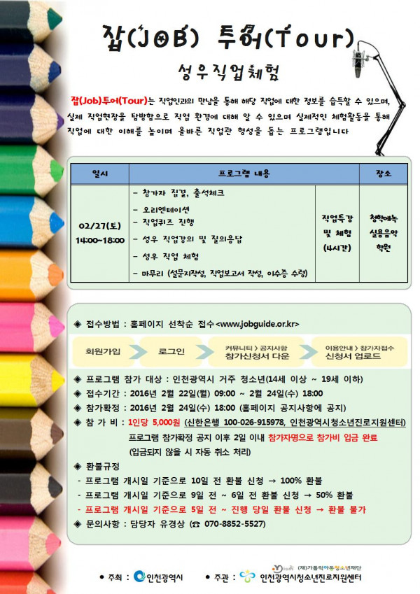 인천광역시청소년진로지원센터 성우직업체험 참가자 모집 페이지 정보 작성자 유경상 작성일2016.02.23 조회8,987회 댓글0건 본문 댓글목록 등록된 댓글이 없습니다. 이전글 다음글 목록