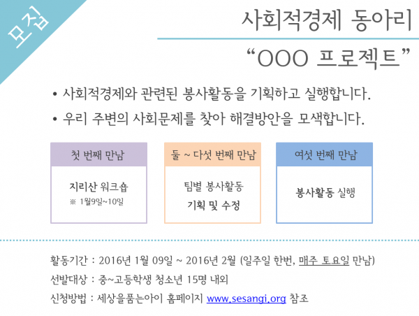 (1월 9~10일 지리산 워크샵 / 2월 중 봉사활동실행 참석필수)