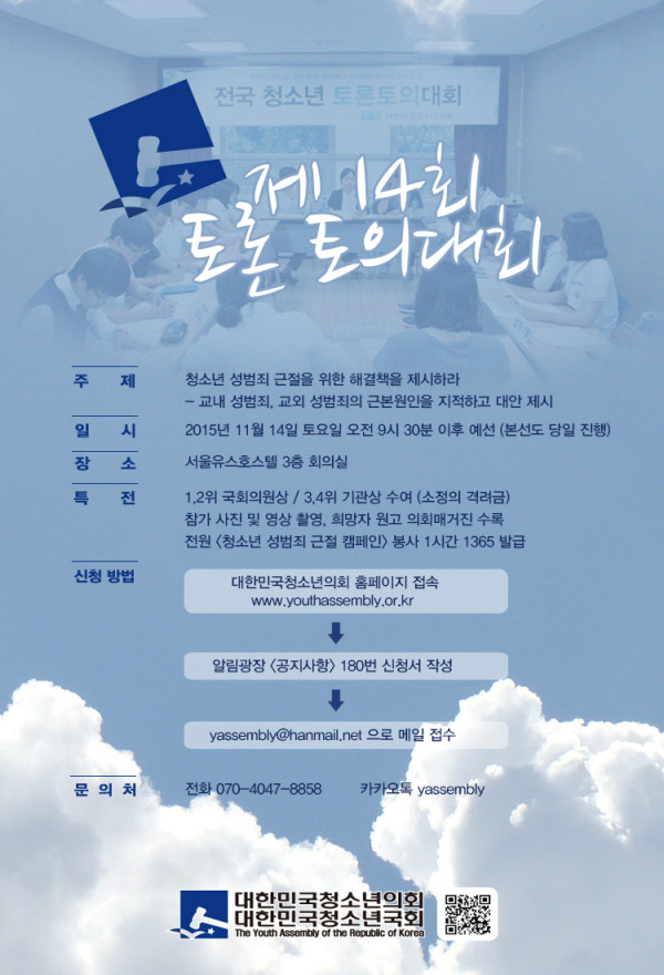 [대한민국청소년의회] 제 14회 토론토의대회 참가자 모집