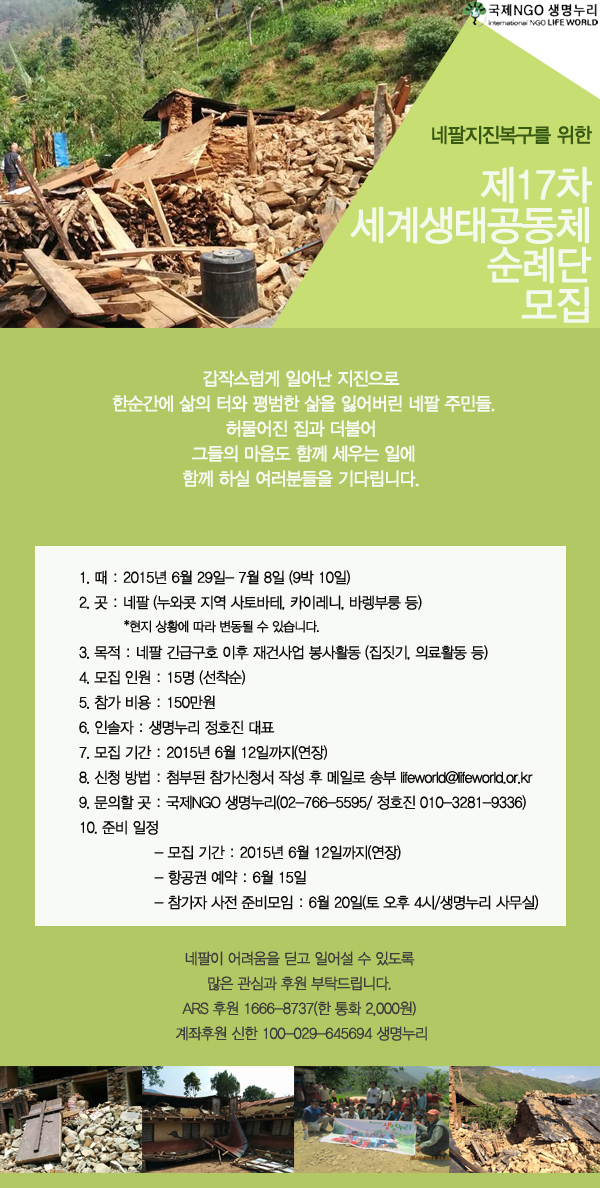 [모집] 네팔지진복구를 위한 제17차 세계생태공동체 순례단 모집
