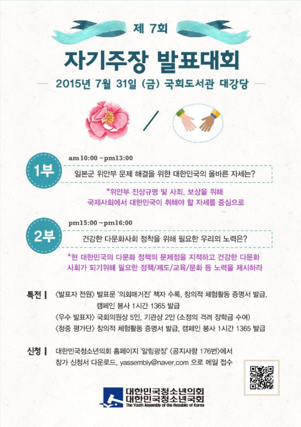 [대한민국청소년의회] 제7회 자기주장발표대회(7/31) 발표자&청중 모집
