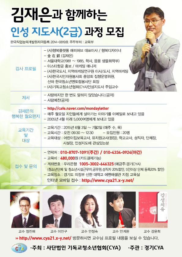 조금 색다른 교육 방식으로 접근했습니다. 나의 인성지수를 이번교육을 통해서 체크해 보시기 바랍니다. 지금 접수중에 있습니다.