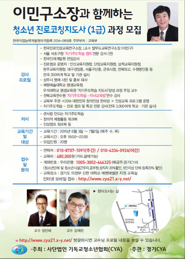 청소년진로코칭지도사1급 19:00~22:00(수.목)