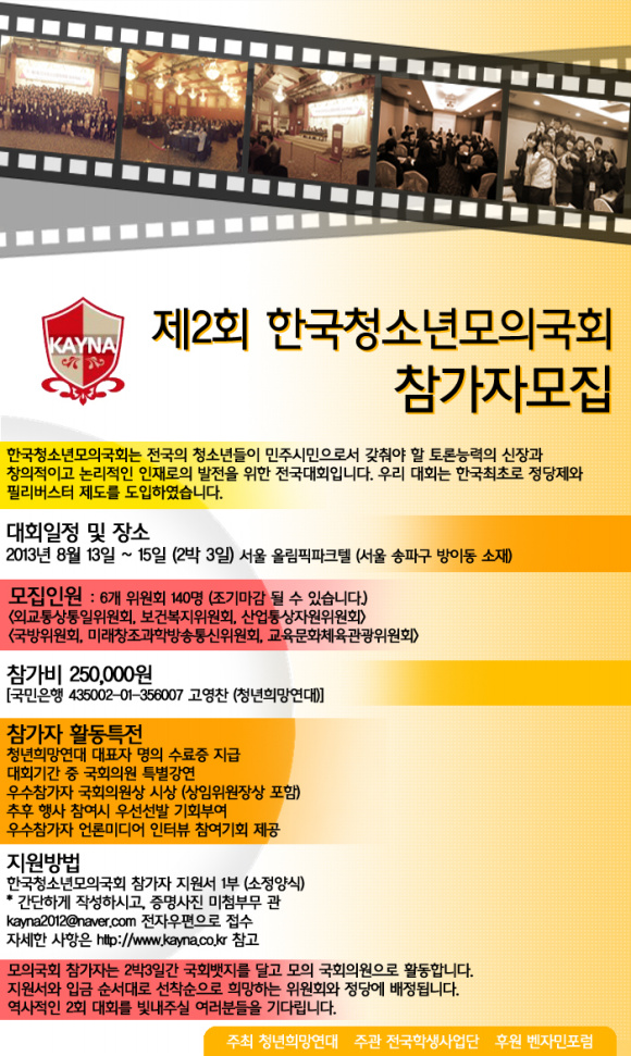 전국에서 정치.외교 등 한국 사회에 관심이 많고 꿈을 꾸고 있는 청소년 분들의 많은 참여기다리겠습니다.