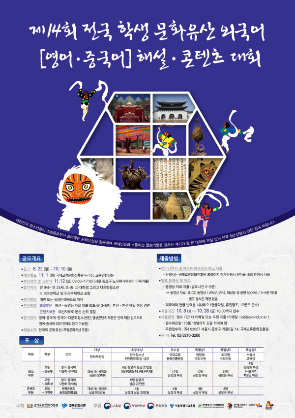 국제교류문화진흥원과 교육연합신문은 전국의 초․중․고․대학생과 다문화청소년이 우리나라의 문화유산을 외국어로 해설하는